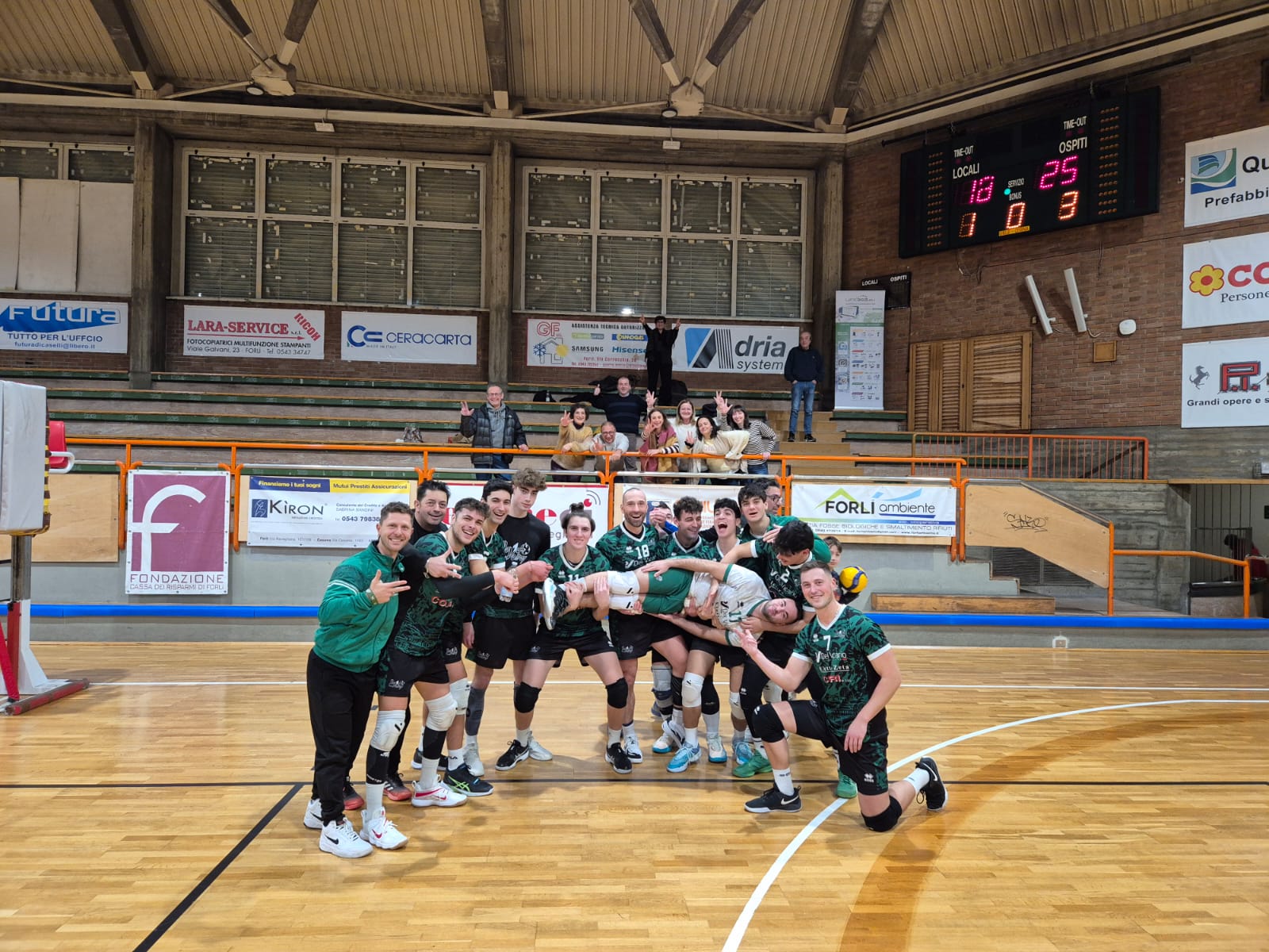 La Nova Volley chiude bene il girone di andata centrando la 5’ vittoria esterna (San Marino, Bellaria, San Severino M. Montorio al V. prime di Forlì) e girando la boa a 29 punti in 3’ posizione alla pari con la Sir Umbria. A Forlì vincono i neroverdi di coach Iurisci per 3-1 in rimonta.