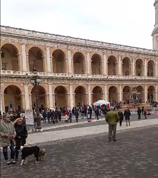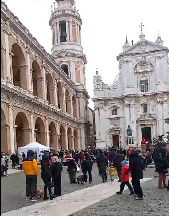 Il momento della benedizione degli animali stamattina in piazza della Madonna a Loreto (foto Giuseppe Busilacchi)
