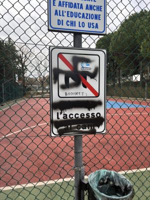 «Pochi mesi fa, dopo l’ennesimo atto vandalico, avevamo riacquistato le porte da calcio ed altra attrezzatura per permettere ai nostri ragazzi di avere un luogo di ritrovo in cui praticare liberamente sport. Oggi – scrivono – ci ritroviamo nuovamente questo luogo vandalizzato ed addirittura svastiche all’ingresso. Abbiamo già dato disposizione di raccogliere le immagini delle telecamere per trovare e punire i colpevoli. Ma non escludiamo altri provvedimenti. Una vergogna».