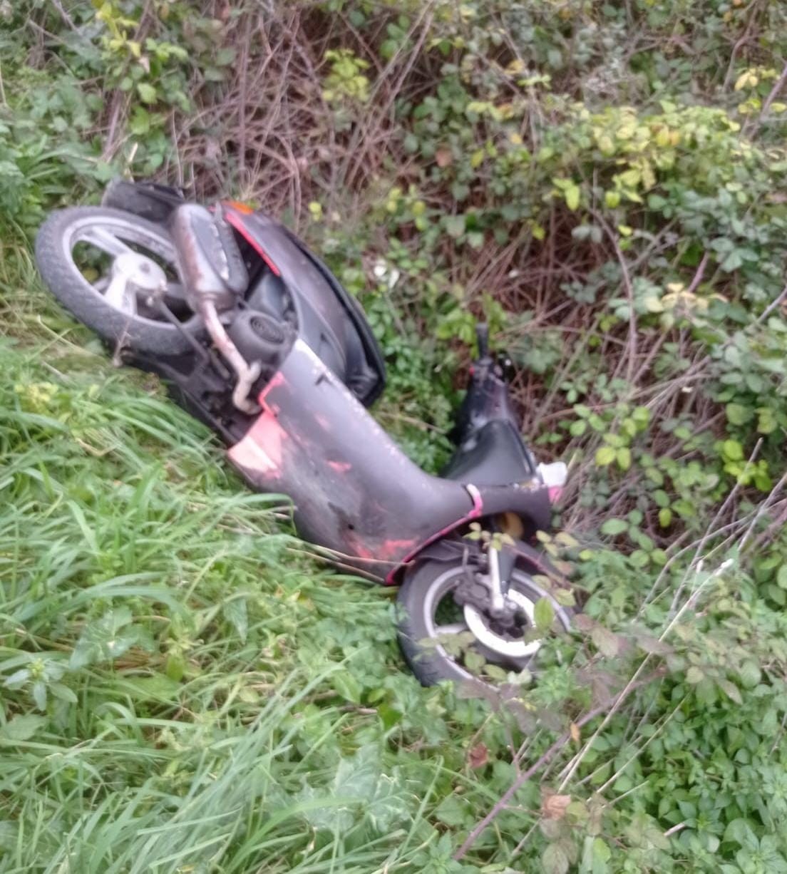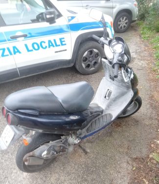 Uno dei motorini ritrovati dalla Polizia locale di Castelfidardo, guidata dal comandante Paolo Tondini