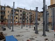 FALCONARA – Procede la realizzazione del grande contenitore del centro città, che consentirà la riqualificazione di un edificio rimasto un’incompiuta per 20 anni. Già posate le prime colonne in acciaio