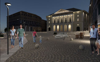 «Riconoscendo la valenza architettonica e la potenzialità della piazza come luogo di aggregazione, si è pensato alla luce come componente integrante dell’arredo e delle nuove aree. L’illuminazione sarà di due tipi: il primo più visibile ed evocativo, il secondo più nascosto e funzionale. Si avranno quindi illuminazioni puntuali che enfatizzano gli spazi di maggiore stazionamento pedonale e raccontano i percorsi di passaggio e proiettori sotto le gronde degli edifici che circondano la piazza.