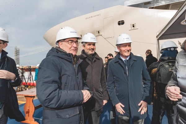 Alla cerimonia di varo hanno partecipato per Fincantieri il presidente, Biagio Mazzotta, l’amministratore delegato e direttore generale, Pierroberto Folgiero, il direttore generale della Divisione Navi Mercantili, Luigi Matarazzo, mentre per l’armatore erano presenti Nadim Ashi, Owner e Executive Chairman, Marc-Henry Cruise Holdings Ltd, Joint Owner/Operator di Four Seasons Yachts/Fondatore e Ceo di Fort Partners, Prosper Assouline, Creative Director, Four Seasons Yachts, e Bart Carnahan, Presidente, Global Business Development, Portfolio Management and Residential, Four Seasons.