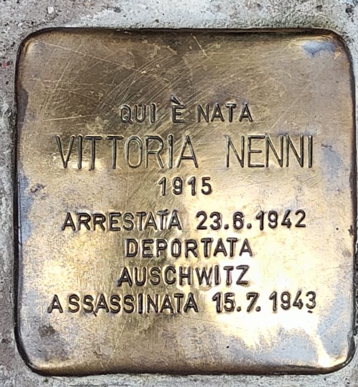 Il percorso della Memoria è proseguito in via Fornaci comunali, davanti dalla pietra d’inciampo dedicata a Vittoria Nenni, dove ad attendere insieme ai rappresentanti Anpi gli studenti delle scuole primarie Da Vinci e gli istituti Galilei, Istvas, Podesti Calzecchi Onesti. era l’assessore alle Politiche Educative Antonella Andreoli, che nel pomeriggio parteciperà ad altra iniziativa presso le scuole Faiani. Vittoria Gorizia Nenni, nata ad Ancona, figlia minore del leader socialista Pietro Nenni, attivista impegnata nella Resistenza francese assieme al marito, morì a 28 anni nel campo di concentramento di Auschwitz in cui era detenuta