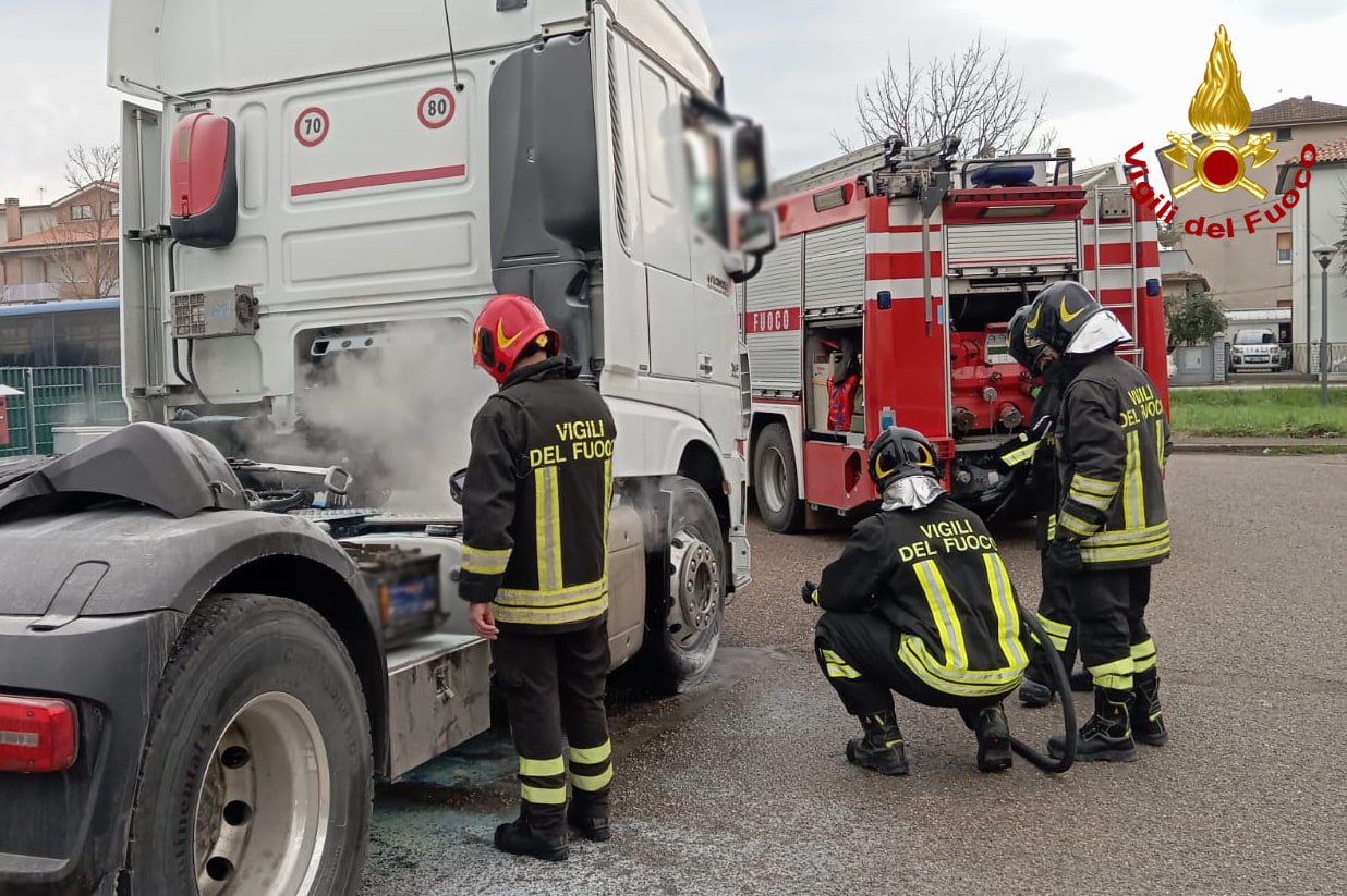 Pericoloso principio di incendio su un tir con semirimorchio che trasportava Gpl.
