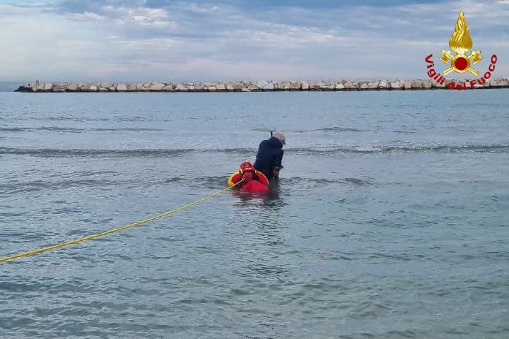 La squadra di Fermo, dotata di attrezzatura per il soccorso acquatico, ha liberato l’uomo per poi riaccompagnarlo a riva e affidarlo alle cure del personale del 118.