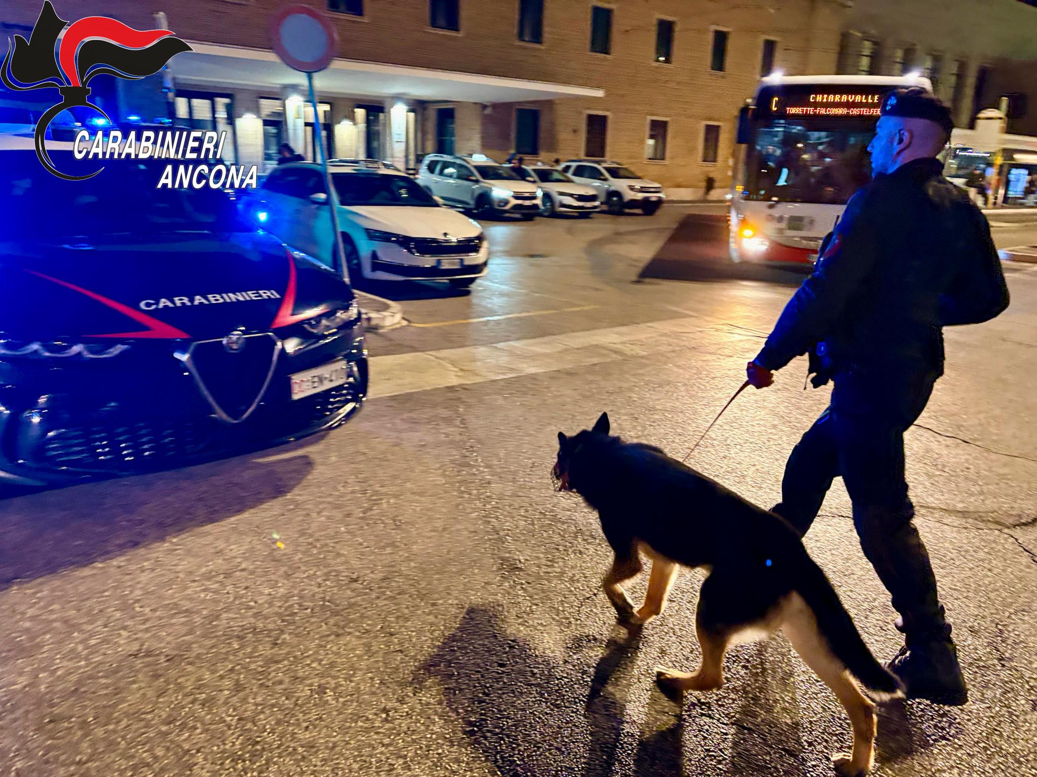 E' IL BILANCIO dell'attività svolta nel pomeriggio e nella serata di ieri dai carabinieri che hanno operato ad Ancona e a Falconara. Oltre 30 i militari impegnato con l'utilizzo dei cani antidroga e antiesplosivo Delta, Kevin e One