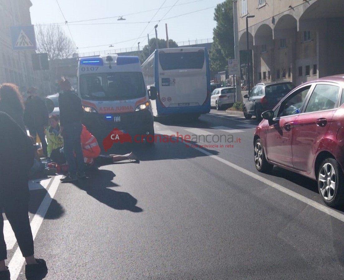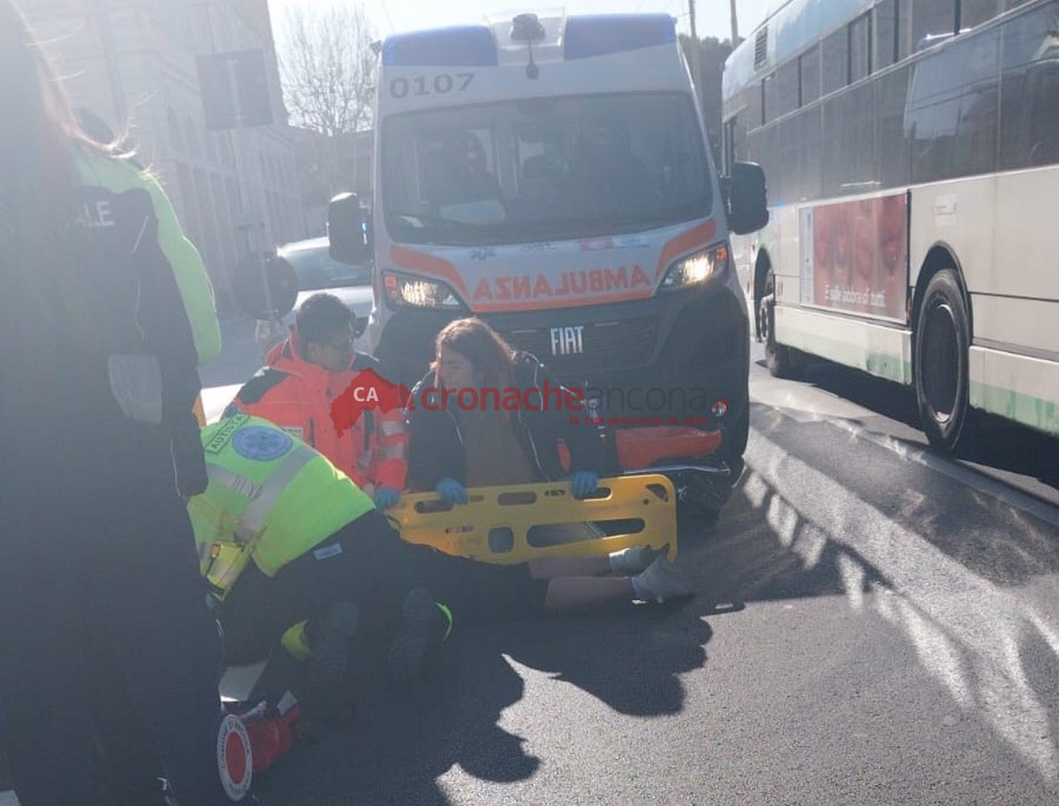 La donna, dopo essere stata medicata e trattata sul posto, è stata trasportata con un codice rosso, non in pericolo di vita, al pronto soccorso di Torrette.