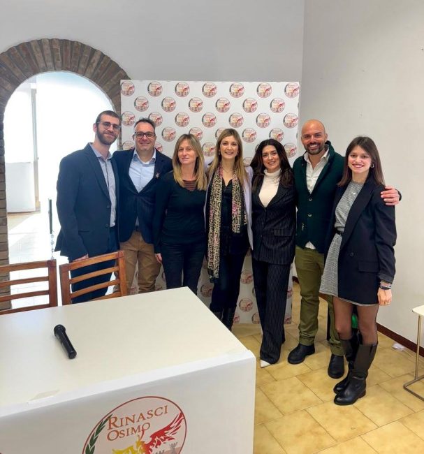 Si riparte quindi dalla sede elettorale di via Einaudi 37, nel quartiere della Sacra Famiglia. «In realtà Rinasci Osimo aveva in mente di avere una propria sede da tempo. – ha spiegato Eleonora Antonelli che ha moderato il dibattito dopo il taglio del nastro – L’avremmo avuta anche se l’Amministrazione uscente fosse ancora vigente , poi le note vicende hanno trasformato questi locali in sede elettorale». «L’idea è nata nel 2019 nel 2024 quando poi ci siamo candidati alle elezioni comunali– ha ricordato Graciotti – E’ nata da un gruppo di 4 persone nel terrazzo di Giulia, Quattro persone che hanno pensato che hanno dei momenti di portare nel cambiamento progetto eh sul quale abbiamo posto quelli che hanno il momento di un nuovo progetto, accantonato durante gli anni del Covid. L’idea si basa sul rinnovamento portato dai giovani, la nostra età media è al di sotto dei 40 anni. Novità non significa inesperienza: siamo stati accusati di essere inesperti. Nella nostra lista ci sono professionisti, imprenditori, medici. Abbiamo un bagaglio professionale molto alto. Siamo volti nuovi e ci prestiamo con la nostra professionalità al mondo della politica e vorremmo portare novità a Osimo insieme a chi ci riconoscerà come fautori di questo cambiamento. Ad ogni campagna elettorale si parla di giovani e di novità, noi vogliamo incarnarla davvero. Questo percorso, i cui fondamenti sono partiti nel 2019, oggi si concretizza». Il logo con la fenice con le 5 torri di Osimo simboleggia appunto la rinascita per la città con un occhio attento al passato «perchè 30 anni fa non è stato come negli ultimi anni» ha evidenziato Graciotti.