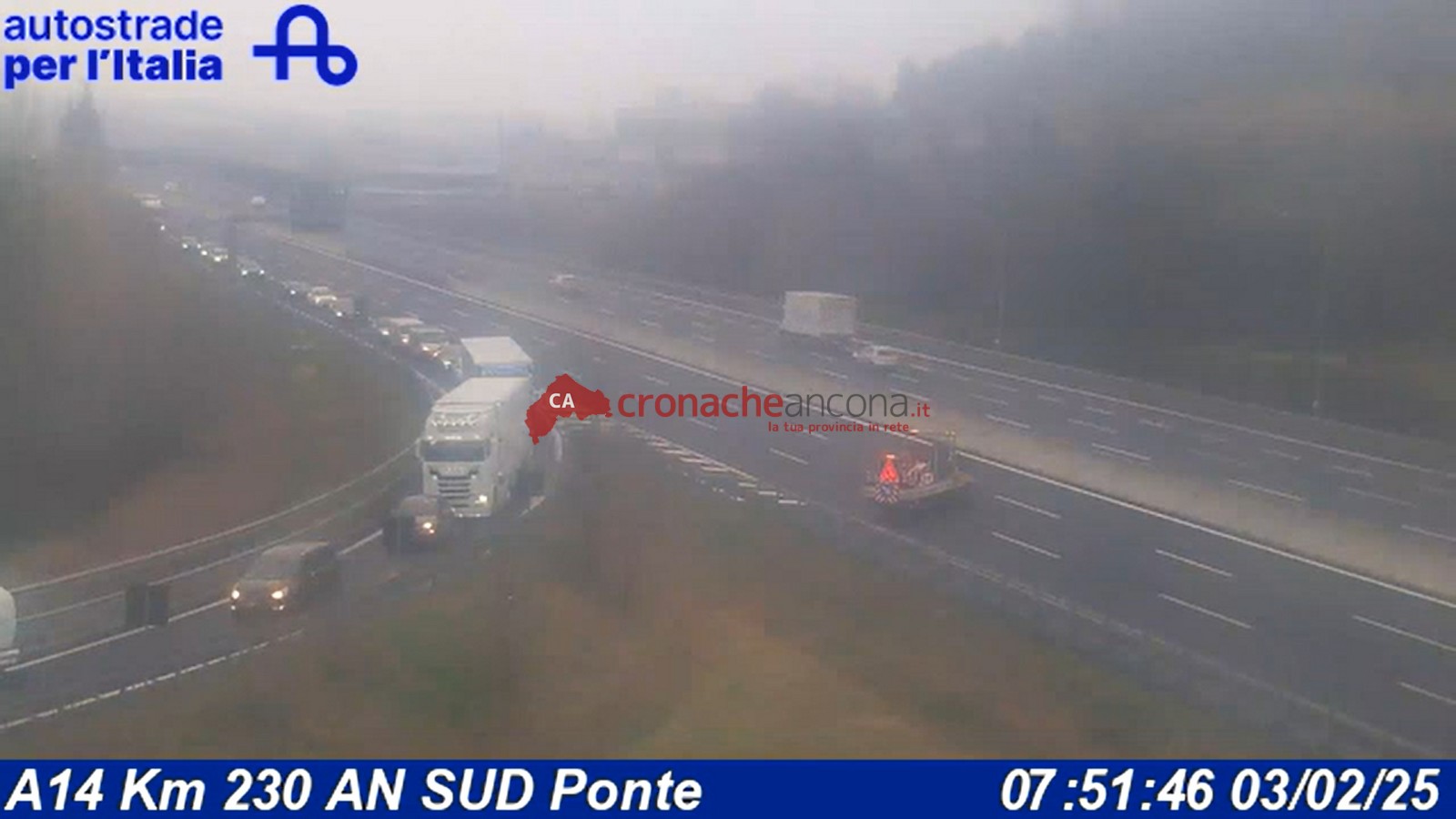 AGGIORNAMENTO DELLE 9,35 – E’ stato riaperto il tratto di A14 tra Ancona Sud e Ancona Nord, interessato dall’incidente di un tir che aveva perso il carico. Autostrade fa sapere che «attualmente si transita su tutte le corsie disponibili e si registrano 4 km di coda in direzione Bologna».