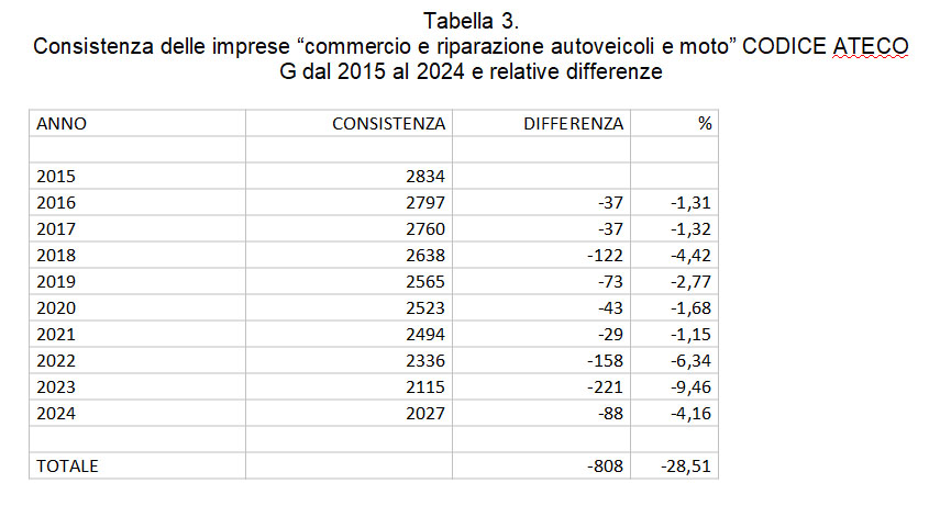 Un segnale positivo, seppur debole, emerge dall’attenuazione della flessione: il dato del 2024 risulta meno pesante rispetto ai cali registrati nel 2022 e nel 2023, quando il tasso di contrazione aveva raggiunto il picco della serie storica. Questa dinamica lascia intravedere una possibile stabilizzazione del numero di imprese, dopo anni di contrazione sempre più accentuata, fatta eccezione per il periodo della pandemia. Nel 2024, infatti, la decrescita si è ridotta dal -6,33% al -2,35%.