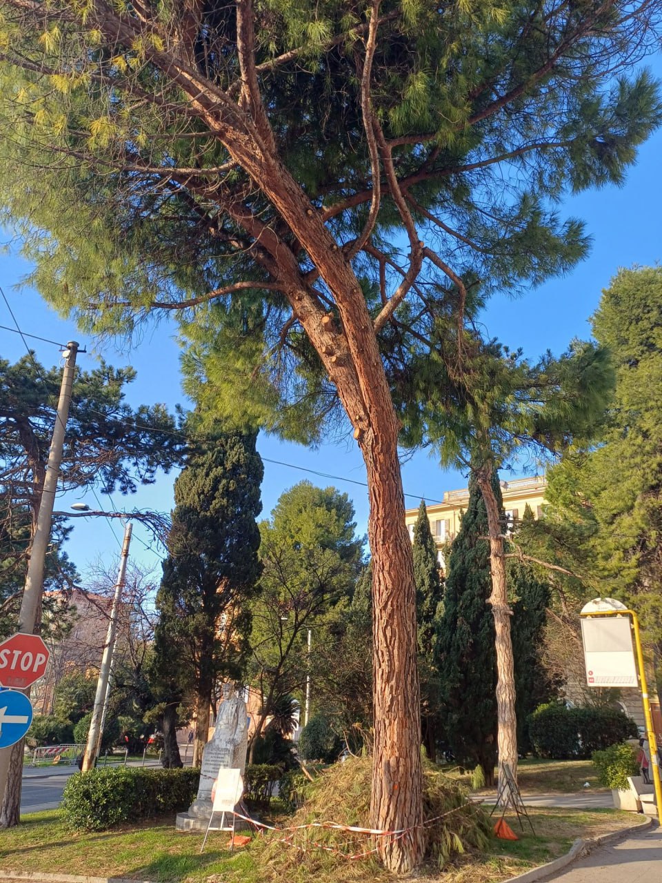 Riguardo al pinus pinea inclinato l’assessore entra nei dettagli. «Avevo dato disposizione di valutare tutte le soluzioni possibile – chiarisce – compresa una adeguata potatura per evitarne l’abbattimento ma la relazione tecnica ha rivelato importanti problematiche morfosintomatiche a carico sia dall’apparato radicale, sia della chioma, con presenza di patogeni che ne impediscono il risanamento».