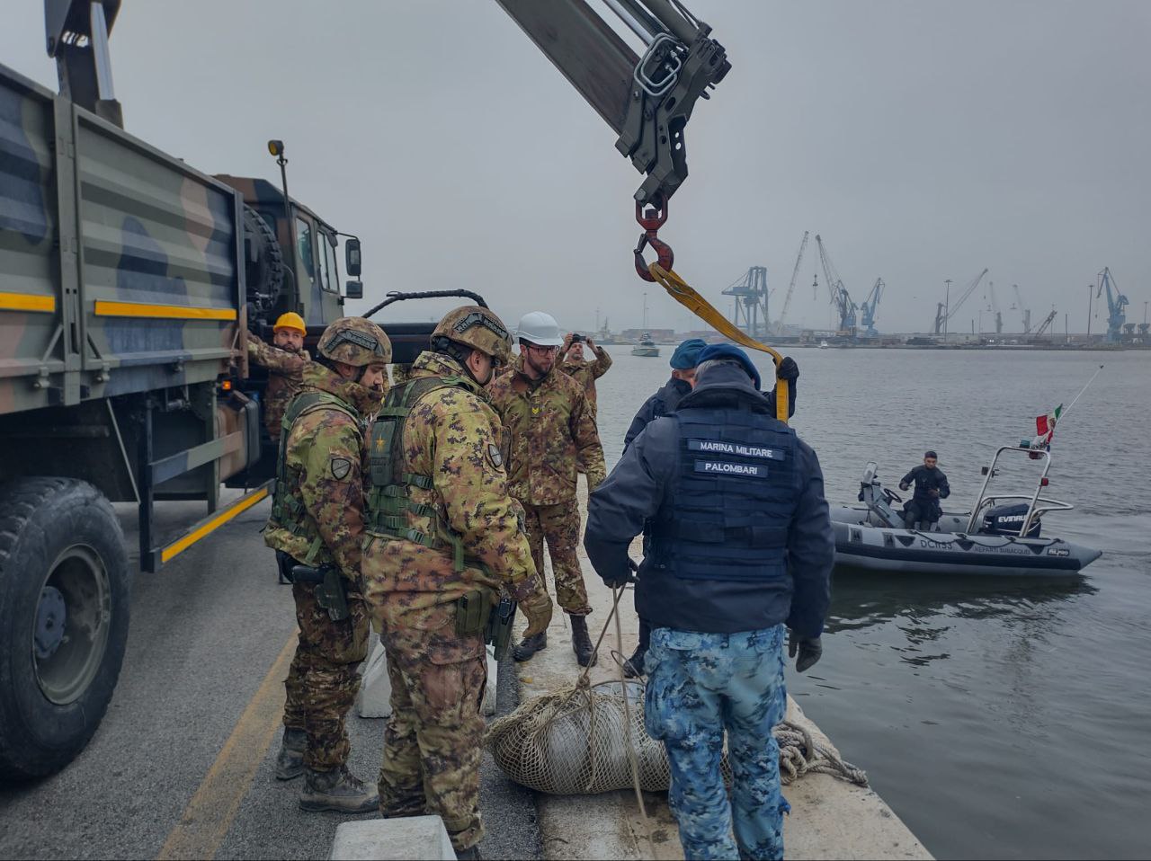 I Genieri dell’Esercito, dopo aver messo in sicurezza nei giorni scorsi l’area di ritrovamento dell’ordigno realizzando anche degli interventi di mitigazione di un’eventuale detonazione accidentale per ridurne il raggio e contenere il rischio, hanno effettuato le operazioni di disinnesco con la massima perizia ed in tempi rapidi provvedendo poi a consegnare l’ordigno, terminate le operazioni di neutralizzazione, agli operatori del Gruppo Operativo Subacquei (Gos) del Comsubin (Comando Subacquei e Incursori della Marina Militare).