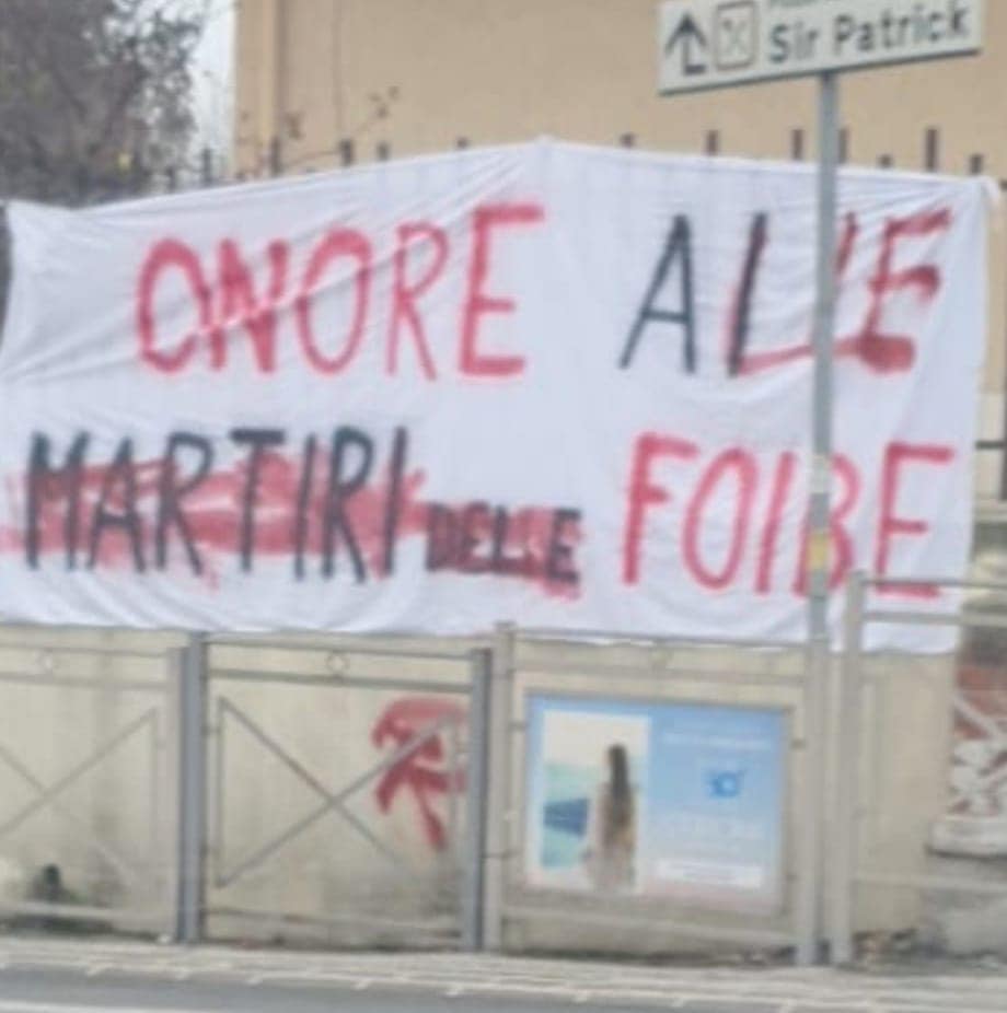 «Segnaliamo il modo in cui nella notte qualche buontempone, cui dedicheremo sicuramente in seguito qualche parola di sincera stima, ha inteso onorare il Giorno del Ricordo ritoccando da par suo lo striscione appeso nei pressi della rotatoria, striscione che abbiamo doverosamente rimesso al suo posto comprensivo delle modifiche apportate, in favore della sottotracciata falce e martello, affinché tutti possano ammirarlo di persona nella sua nuova e significativa veste». Parole di denuncia che arrivano con un post corredato di foto e firmato dai soci dell’associazione culturale Giarabub di Filottrano che l’altro ieri sera aveva esposto lo striscione in un’inferriata della rotatoria all’ingresso del paese. Il gesto è stato condannato da tutti i partiti politici citadini, da Fratelli d’Italia al Pd e anche dal sindaco Luca Paolorossi che ieri sera ha preso parte alla fiaccolata solenne organizzata a Porto San Giorgio dall’Associazione degli Istriani in collaborazione con l’Amministrazione comunale e la Regione Marche.