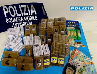 Al momento del blitz i poliziotti, con uno stratagemma, sono riusciti ad accedere nell’abitazione ma l’uomo, dopo aver spintonato violentemente gli agenti, è riuscito a a gettare dalla finestra uno zaino che, subito recuperato dai poliziotti appostati ovviamente anche in strada, è risultato contenere 6 chili e mezzo di hashish, suddiviso in 66 panetti.