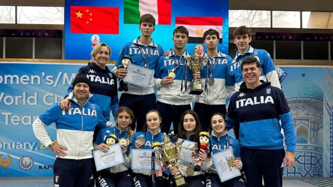 È dominio azzurrino a Tashkent nella prova a squadre della tappa di Coppa del Mondo Under 20. La medaglia d’oro è stata conquistata dal quartetto formato dallo jesino Federico Greganti, insieme a Mattia De Cristofaro, Matteo Iacomoni e Elia Pasin. La squadra maschile ha superato, nel match d’esordio, la Giordania con il punteggio di 45-24. In semifinale gli azzurrini hanno battuto l’Egitto per 45-41 gestendo fin dai primi istanti l’incontro. Anche i fiorettisti italiani sono saliti sul primo gradino del podio grazie alla vittoria per 45-43 sulla Cina, al tramonto di un incontro tirato dal primo all’ultimo istante.