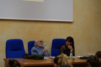 Il poeta Umberto Piersanti con la professoressa Laura Trozzi, organizzatrice dell’iniziativa insieme alla professoressa Alessandra Marcuccini.