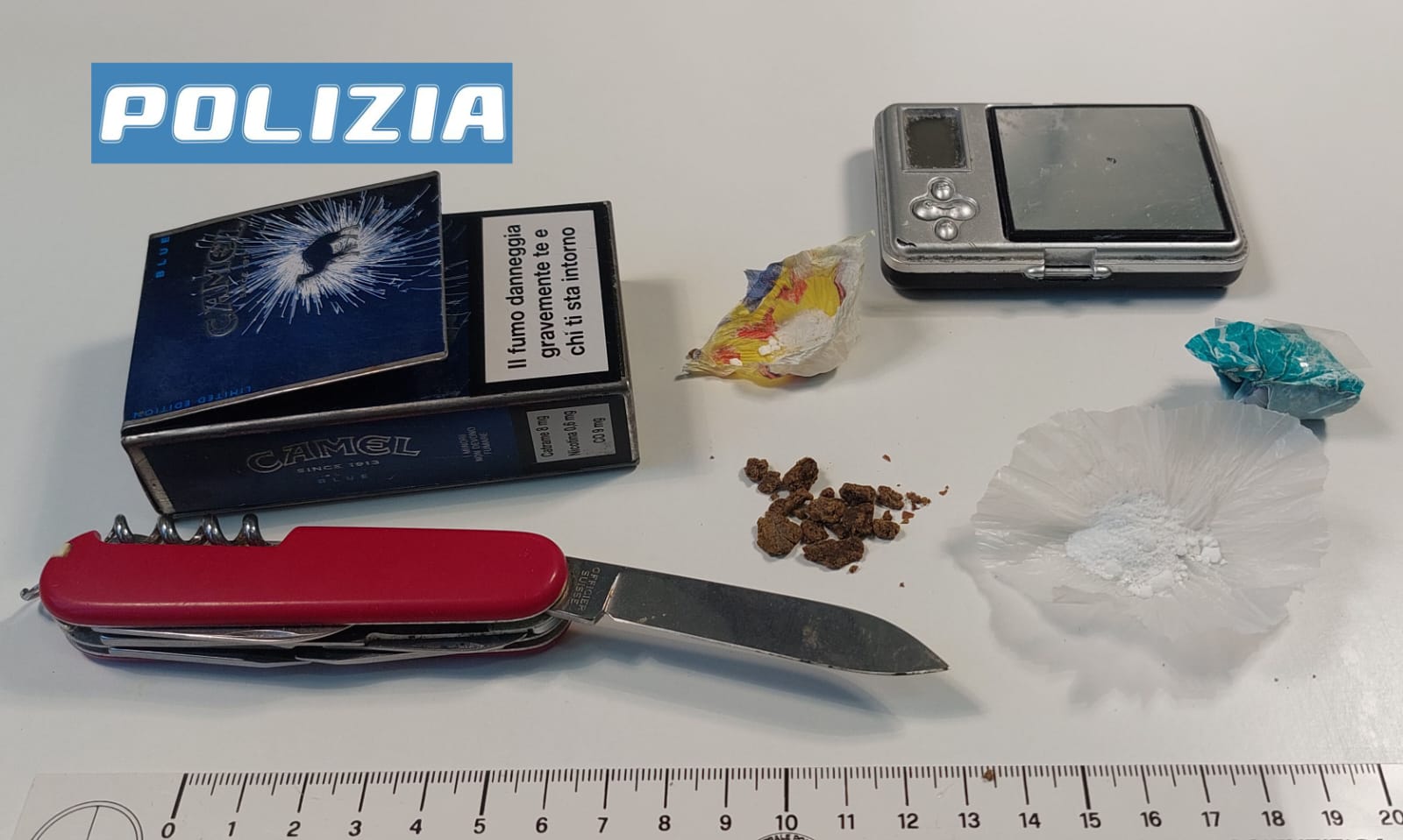 Inoltre, nella tasca dei pantaloni aveva un coltello svizzero multiuso con la lama di 7 centimetri e sequestrato. Accompagnato in Commissariato è stato denunciato per porto di oggetti atti ad offendere e segnalato per uso personale di stupefacenti.