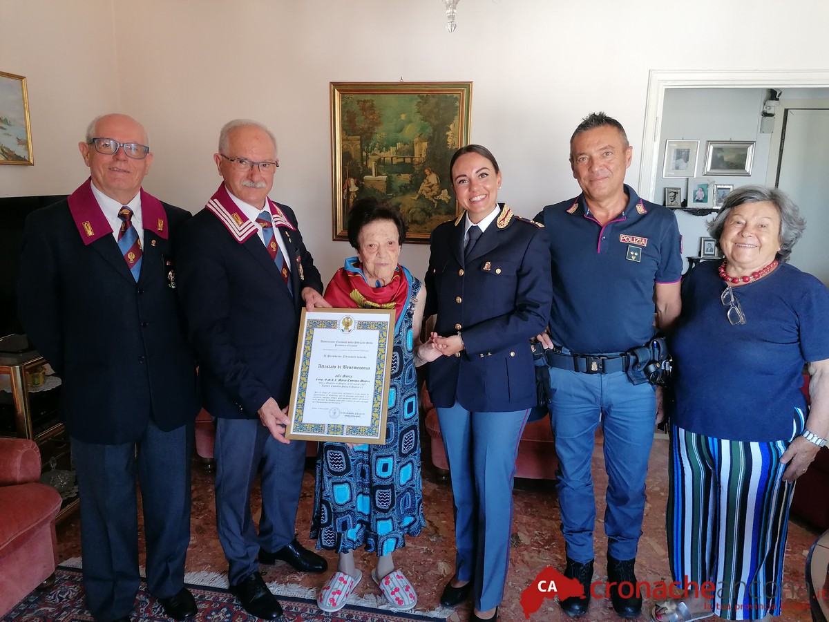 Già Ispettore Capo della Polizia di Stato e Commendatore della Repubblica Italiana, Maria Caterina Matera è stata una pioniera della Polizia di Stato e tra le prime donne a prestare servizio nel capoluogo dorico; non solo, il suo senso di appartenenza all’Amministrazione è stato sempre così elevato che desiderò festeggiare i suoi “primi” 90 anni in quella che definì la sua “casa”, ovvero la questura di Ancona.
