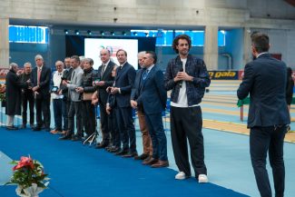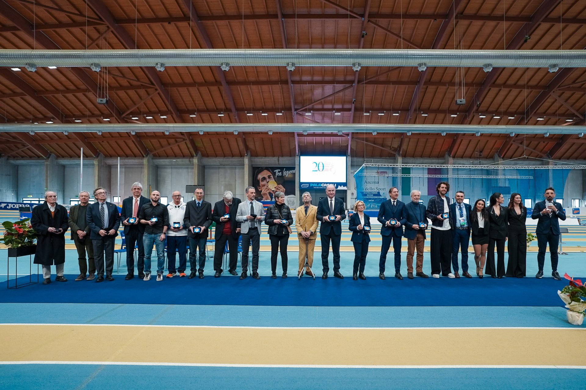 Da vent’anni è la ‘casa’ dell’atletica italiana indoor. Al PalaCasali di Ancona è stato festeggiato l’importante anniversario dei 20 anni dall’inaugurazione, alla presenza del presidente Fidal Stefano Mei, del presidente del Comitato Regionale Marche Fabio Romagnoli, dell’assessore allo sport della Regione Marche Chiara Biondi, dell’assessore agli impianti sportivi del Comune di Ancona Daniele Berardinelli. Tra gli ospiti anche il campione olimpico di Tokyo del salto in alto Gianmarco Tamberi che ha costruito i propri successi proprio al PalaCasali. Nell’ambito della cerimonia, il presidente Mei ha consegnato a quattro atleti azzurri l’onorificenza di Ufficiale della Repubblica conferita dal capo dello Stato Sergio Mattarella per i risultati ottenuti alle Olimpiadi di Parigi: il bronzo del triplo Andy Diaz e i quarti classificati dei Giochi Larissa Iapichino (lungo), Stefano Sottile (alto) e Matteo Melluzzo (staffetta 4×100). Premiate tante personalità che hanno contribuito alla nascita e allo sviluppo dell’impianto marchigiano: dall’architetto Roberto Buccione all’ingegner Rodolfo Giampaoli, da Fabio Sturani che ha voluto fortemente il PalaCasali, realizzato quando era sindaco di Ancona, a Enrico Turchetti, già assessore ai lavori pubblici, insieme a Giuseppe Scorzoso e Simone Rocchetti, che hanno guidato negli anni scorsi il Comitato Fidal Marche, a Pietro Domenichelli, coordinatore del PalaCasali, e Orazio Mancinelli, fiduciario regionale del Gruppo Giudici Gare, a Maria Teresa D’Angelo, coordinatore regionale Sport e Salute, Luca Savoiardi, presidente Cip Marche, e Fabio Luna, presidente Coni Marche.