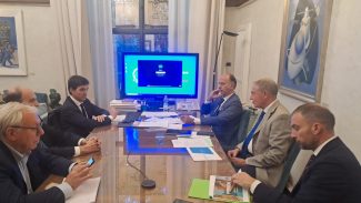 Un momento di uno dei bilaterali tra il ministro Urso e il governatore delle Marche Acquaroli (archivio)
