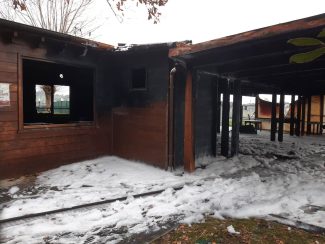La bocciofila distrutta dalle fiamme (Foto profilo FB presidente del Comitato Erbarella San Pietro Martire, Jhonny Pigliapoco)