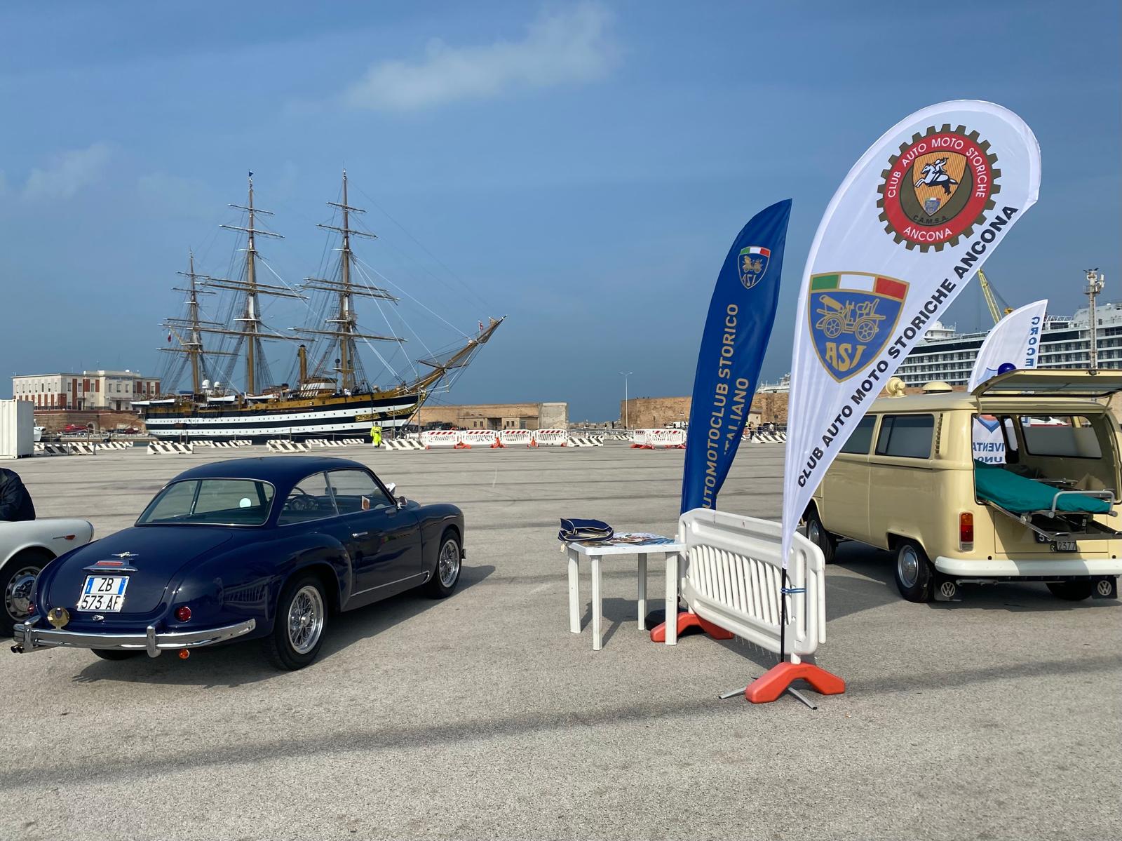 Non è la prima volta che il Club AutoMoto Storiche di Ancona è protagonista al porto di Ancona in occasione dell’arrivo del veliero, con i soci che avevano già esposto i propri mezzi nell’ottobre del 2022 quando fece tappa nel capoluogo di regione.