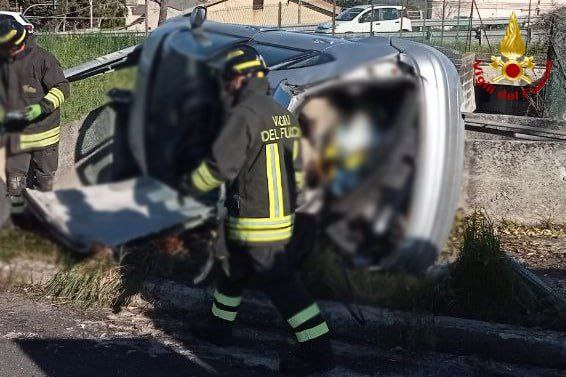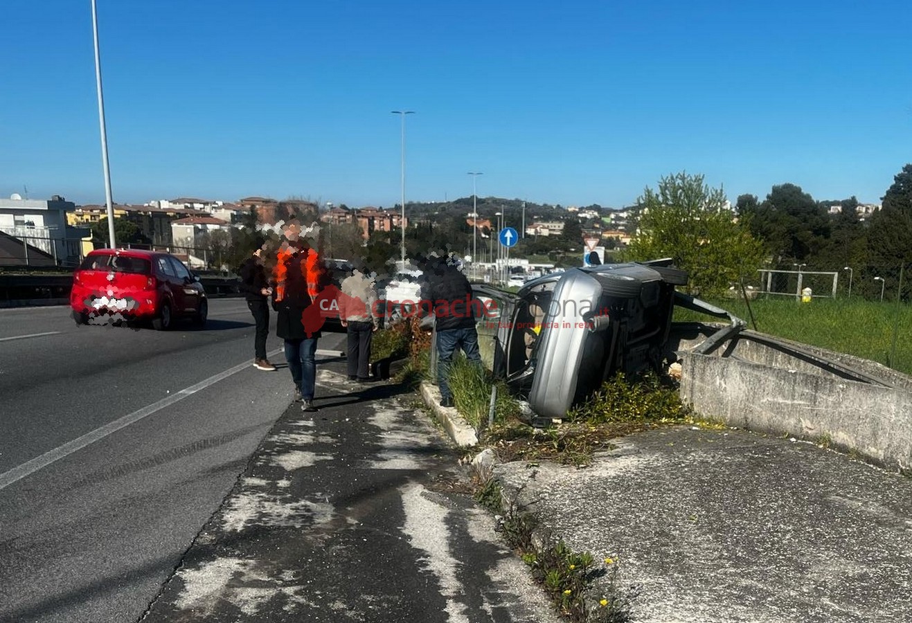 Si è schiantato lungo la ‘bretella’ mentre procedeva in direzione centro, rimanendo poi incastrato nella vettura finita su un lato.