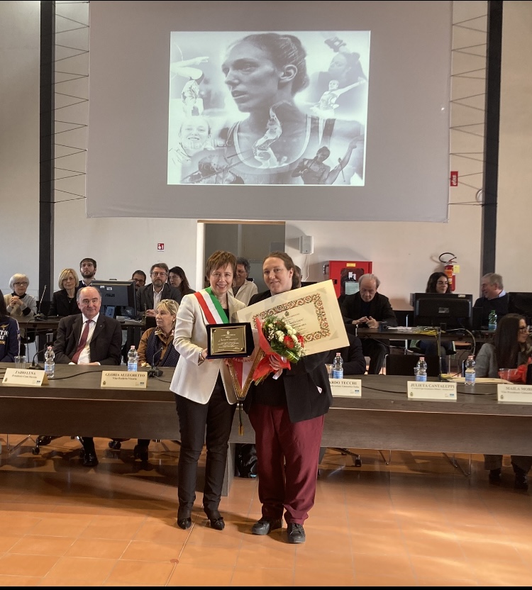 Julieta Cantaluppi riceve la pergamena della cittadinanza onoraria di Fabriano nel consiglio comunale di gennaio 2023 (archivio)