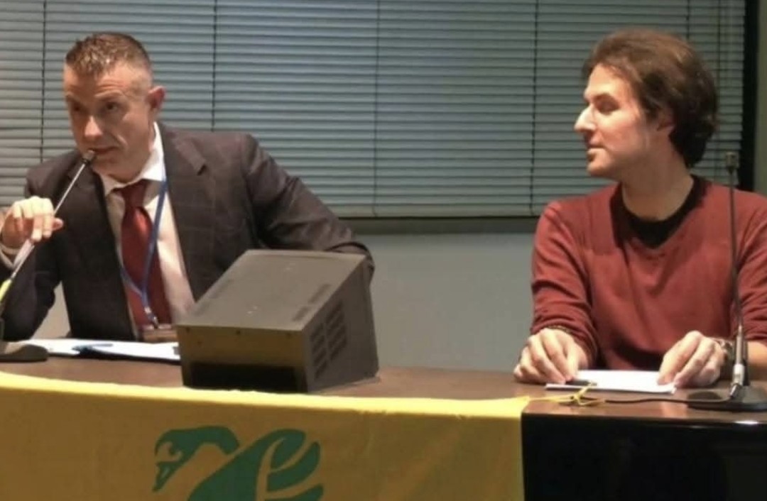 Al microfono il presidente di Legambiente Osimo Leonardo Puliti con il presidente di Legambiente Marche Marco Ciarulli