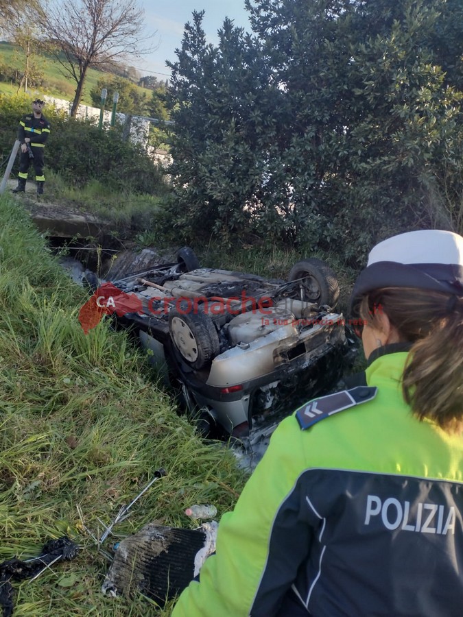 Il dramma si è verificato nel pomeriggio, intorno alle 17, in zona Monterado, nel comune di Trecastelli quando, per cause in corso di accertamento da parte della polizia locale Unione dei Comuni, intervenuta per i rilievi e la ricostruzione della dinamica, la Opel Corsa con alla guida una donna di 54 anni residente in provincia di Pesaro e Urbino, che viaggiava da sola, si è ribaltata dopo essere uscita dalla carreggiata, finendo in un fossato. Poco dopo, ecco un forte odore di benzina e successivamente uno scoppio e le fiamme.