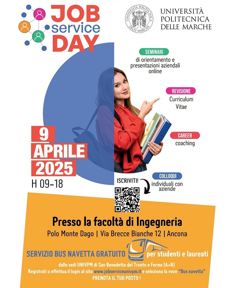 Si terrà mercoledì il Job Service Day, organizzato all’Università Politecnica delle Marche, presso la Facoltà di Ingegneria nel Polo Monte Dago di Ancona, a partire dalle 9 e fino alle ore 18.