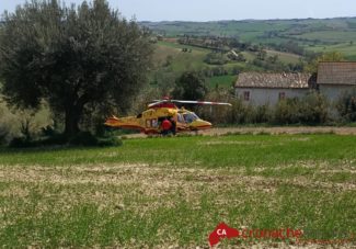 L’uomo, un 67enne, è stato soccorso e medicato per poi essere trasportato in eliambulanza al pronto soccorso di Torrette con un codice rosso.