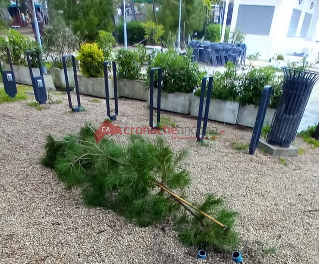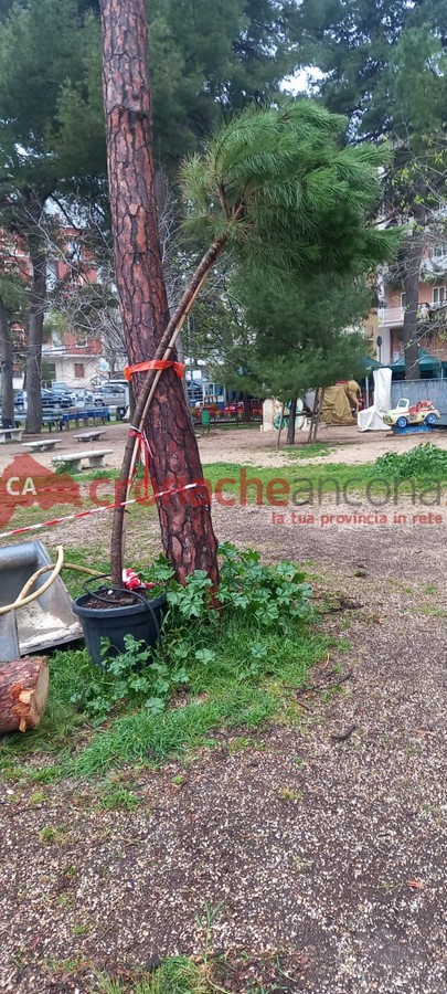 I nuovi pini che dovrebbero ripopolare la Pineta del Passetto, sembra si siano arresi col primo soffio di vento e con la pioggia abbattutasi ieri in città.