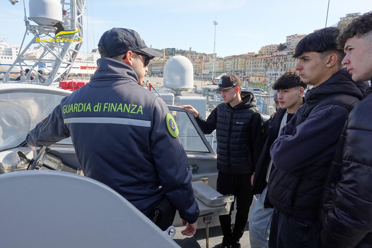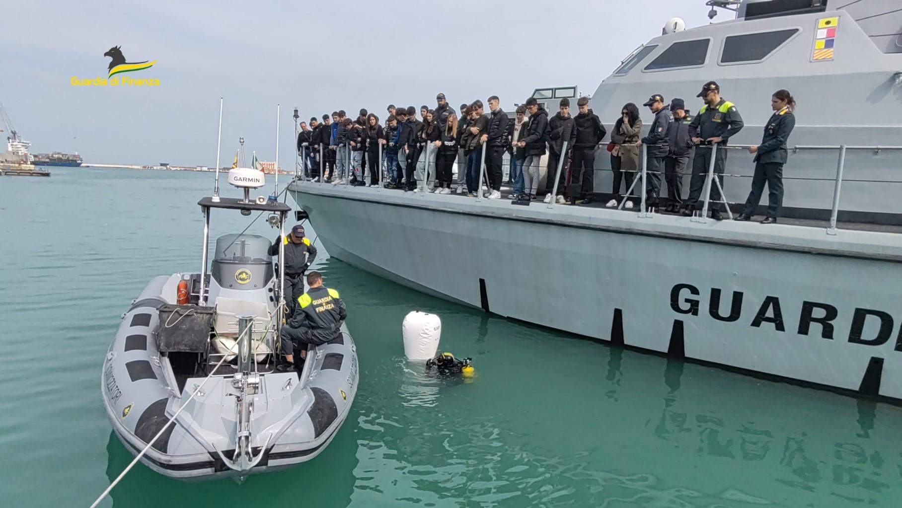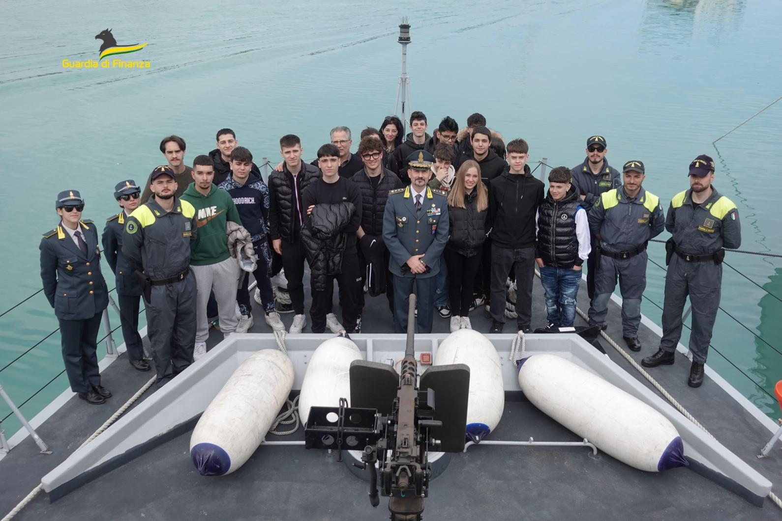 Oltre 250 studenti degli Istituti d’Istruzione Superiore “Volterra – Elia” e “Vanvitelli – Stracca – Angelini” di Ancona, e dell’Istituto Tecnico Liceo Scientifico Aeronavale “Antonio Locatelli” di Grottammare, hanno partecipato alle visite guidate presso gli ormeggi e a bordo dei mezzi navali della Guardia di Finanza in dotazione alle sedi di Ancona e di San Benedetto del Tronto.