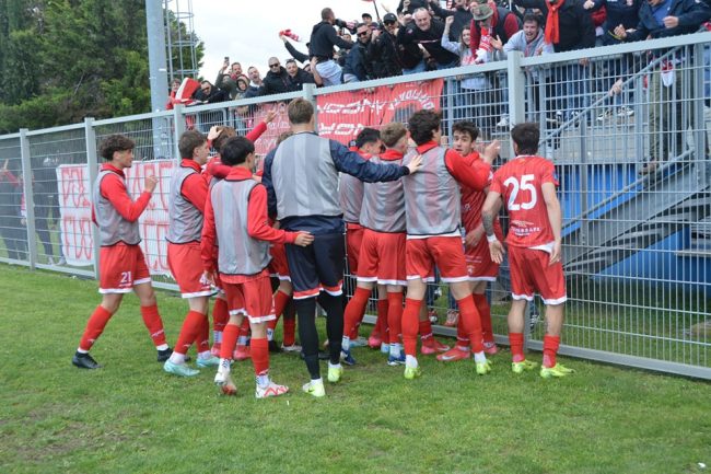 Botta e risposta tra Fossombrone ed Ancona, Amerighi risponde a Martiniello, termina in parità per 1 a 1 il derby del Marcello Bonci utile per entrare in zona playoff. La squadra di Massimo Gadda passa in vantaggio con il bomber campano al 67’ ma tre minuti dopo i padroni di casa pareggiano i conti. I biancorossi conservano la quinta posizione di classifica, Martiniello sale a quota 15 reti nella classifica dei marcatori. Non è poco dopo diversi giorni difficili, dove il calcio giocato è passato in secondo piano. A due giornate dal termine della stagione regolare l’Ancona mantiene il punto di vantaggio sul Fossombrone, i prossimi avversari per Codromaz e compagni saranno Castelfidardo in casa ed Avezzano in trasferta.