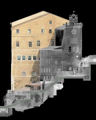 E’ previsto quindi il risanamento conservativo delle 2 facciate, «entrambe interessate da processi di degrado strutturale e dei materiali, dovuti principalmente al dilavamento delle acque meteoriche, degli agenti inquinanti e dell’esposizione all’azione del vento, veicolatore di particellato contenente, tra l’altro cloruri, particolarmente aggressivi per i materiali costitutivi i manufatti. In particolare si prevede di intervenire prioritariamente sulla facciata di Piazza Stracca con la porzione di facciata laterale sulla quale svetta la vela campanaria. La prosecuzione del restauro delle altre facciate potrà essere affrontato dopo l’intervento sull’area archeologica scavata e sulla sistemazione del “podio”, il terrazzamento, cioè su Piazza Dante Alighieri». prosegue la relazione tecnica