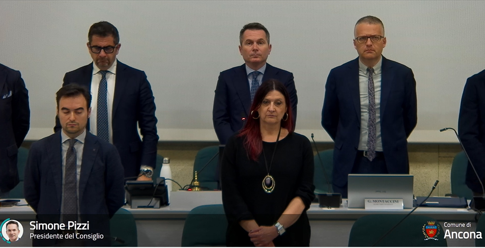 Sindaco, assessori e presidente del Consiglio comunale di Ancona in piedi per commemorare Papa Francesco