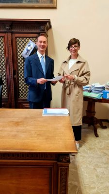 Michela Glorio ha consegnato ieri le sue 8 liste al segretario generale del Comune di Osimo, Mauro Sopranzetti