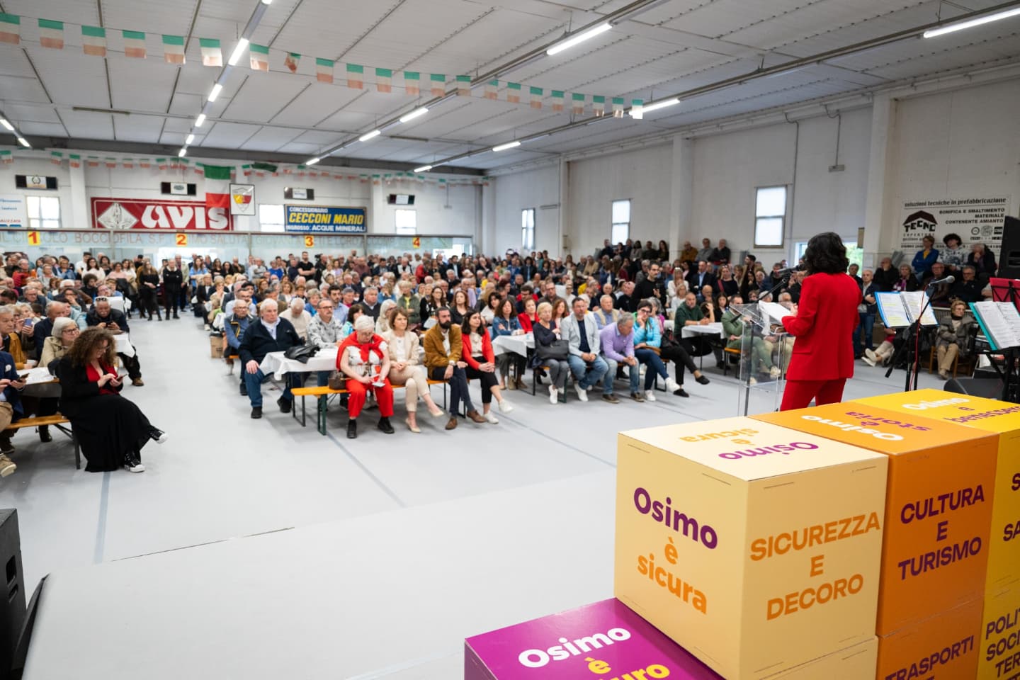 Affrontando la questione della Osimo solidale ha aggiunto che «con l’amministrazione Pirani dimissionaria, tutte le associazioni, culturali, giovanili, socio-sanitarie non hanno visto un euro di contributi comunali. Se saremo eletti e se il bilancio lo permetterà (la commissaria prefettizia ha parlato di conti in ordine a gennaio), noi erogheremo non solo il contributo 2025 ma anche quello non dato nel 2024». Per la Osimo che guarda al futuro, la candidata sindaca del centrosinistra si è concentrata invece sulla questione del Cinema Concerto. «In un video recente – ha detto – viene detto che è stato chiuso, ma in realtà è stata l’ultima amministrazione a farlo per il pretesto legato al problema di una porta del bagno montata al contrario non quella precedente che l’ha recuperato e riconsegnato alla città. E così l’auditorium negli ex magazzini Campanelli, i cui lavori sono conclusi ma è rimasto chiuso. Fermi anche i lavori di ristrutturazione della chiesa di San Filippo, della realizzazione della scuola di Campocavallo e del Museo del Covo».