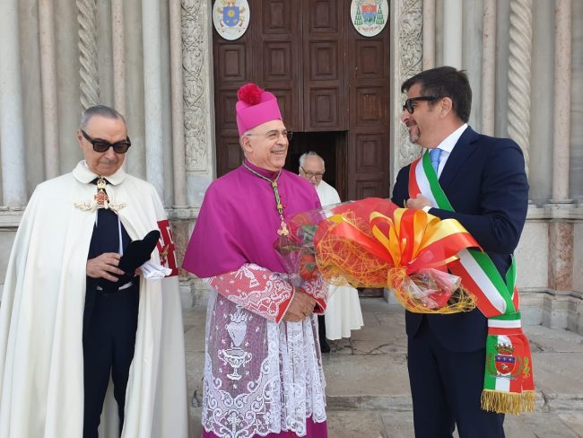 Il sindaco Daniele Silvetti con l’arcivescovo Angelo Spina stamattina al Duomo. Il primo cittadino di Ancona sui social ha pubblicato foto e messaggio per la giornata di festa: «ANCONA celebra il suo San CIRIACO. Tanti secoli, diverse culture: un solo Patrono. Si rinnova l’Armonia tra Società Civile e Comunità Ecclesiale della nostra Citta’. Buona Festa!!»