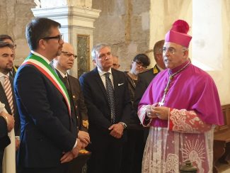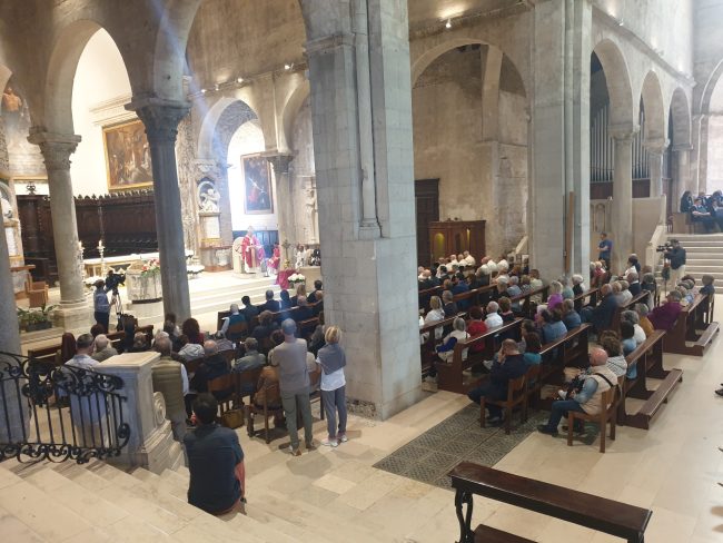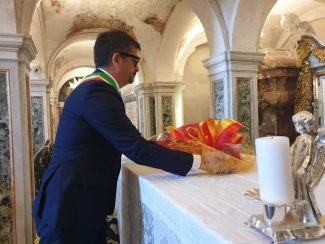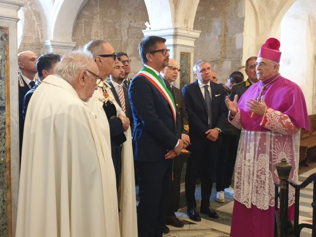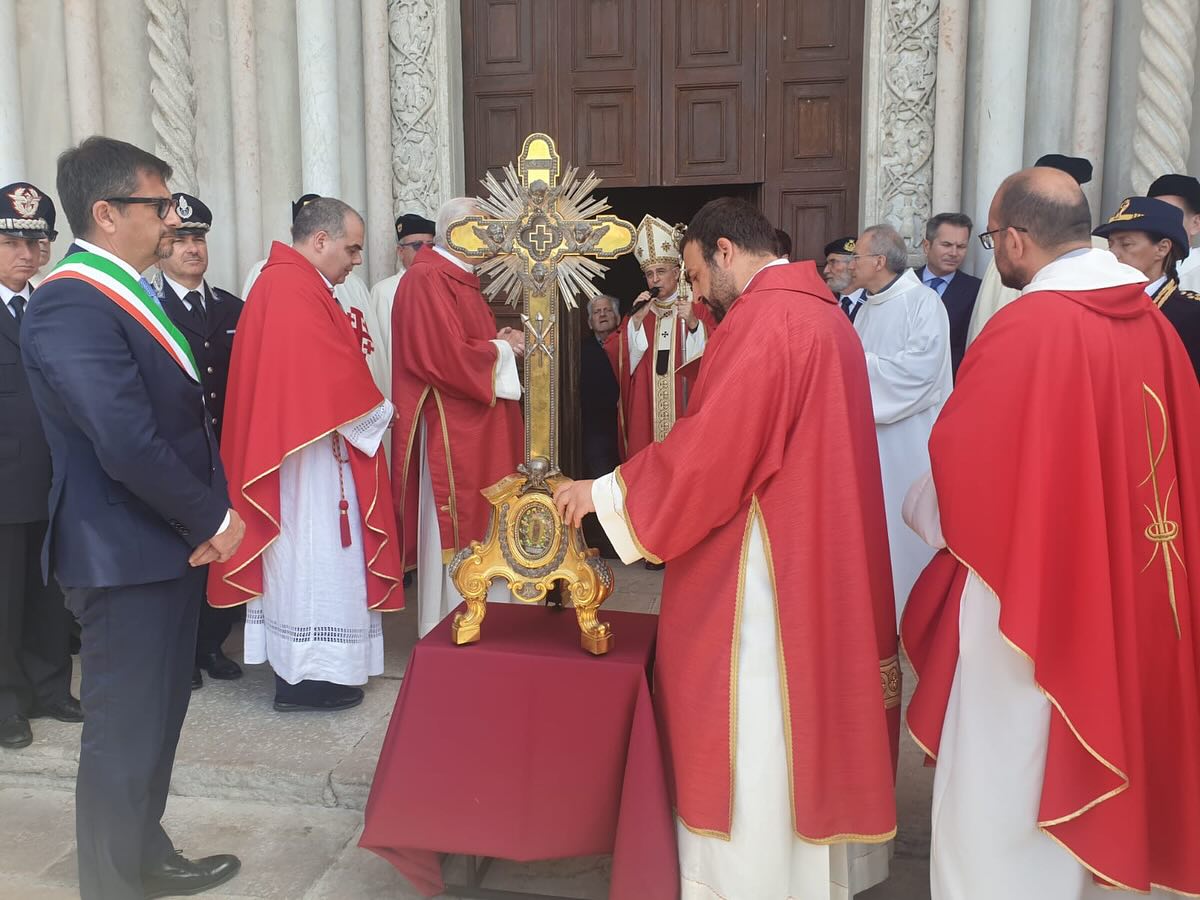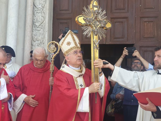 Nella solennità di San Ciriaco, patrono dell’Arcidiocesi di Ancona-Osimo e della città di Ancona, mons. Angelo Spina ha presieduto questa mattina alle 10.30  la celebrazione eucaristica nella Cattedrale. Come di consueto, prima della Santa Messa, il sindaco di Ancona Daniele Silvetti, accompagnato dall’arcivescovo, ha offerto l’omaggio floreale a San Ciriaco, dopodiché Mons. Angelo Spina ha concelebrato la funzione religiosa, a cui hanno partecipato le autorità civili e militari. Al termine della celebrazione, sul sagrato della Cattedrale, l’arcivescovo ha elevato la preghiera a San Ciriaco e ha impartito la benedizione con il reliquiario, contenente un frammento della croce di Cristo e la reliquia del santo.
