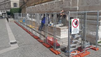 L’intervento, come viene spiegato dal Comune, serve «Per riattaccare stabilmente un mascherone in bronzo lesionato a seguito di un atto vandalico».