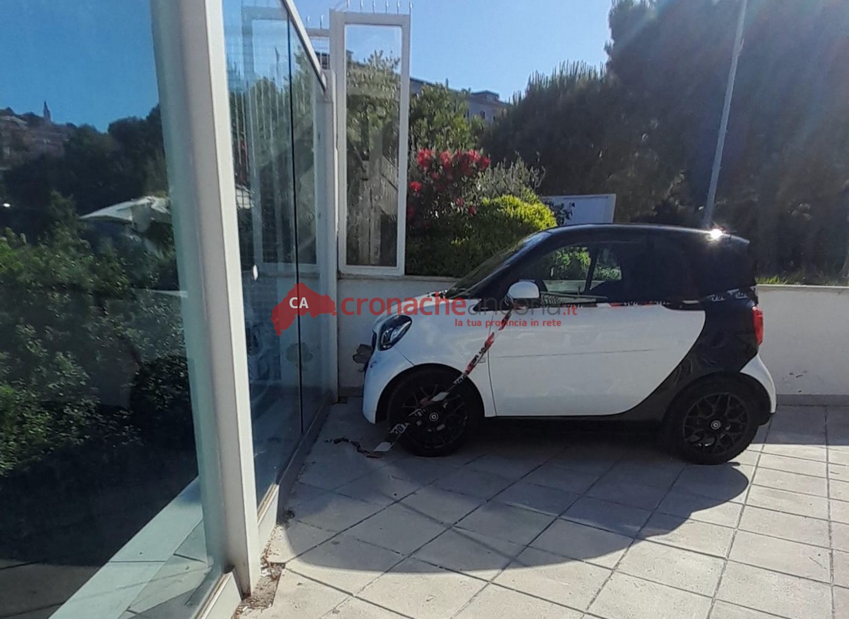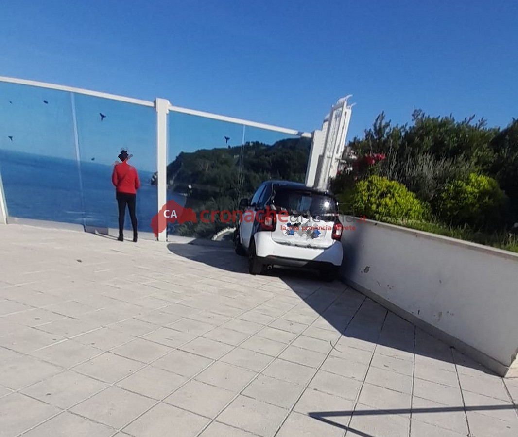 La Smart finita oltre le scalette che portano all’ascensore del Passetto (Foto: Aristogitone Lantieri)