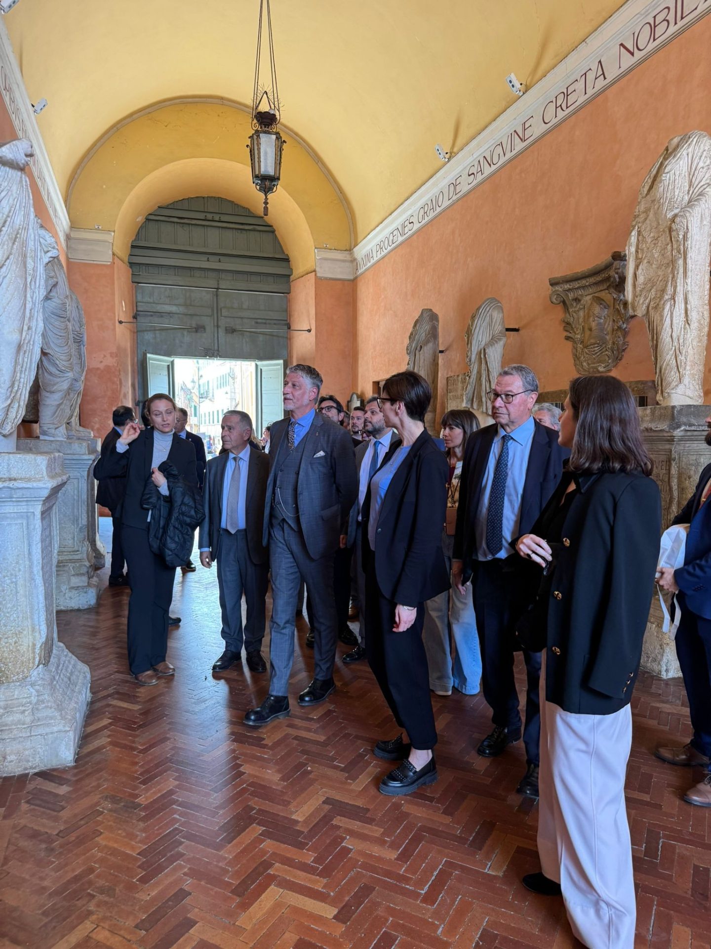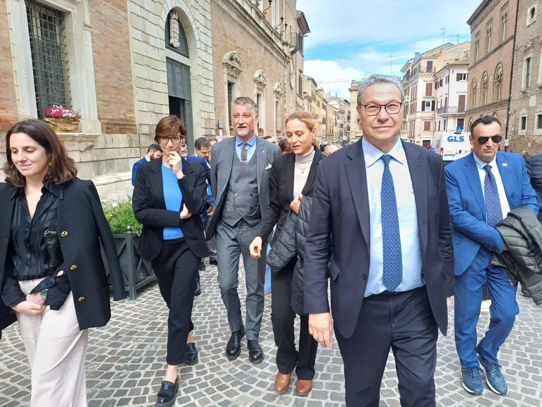 Nella sua breve permanenza a Osimo il ministro alla Cultura Alessandro Giuli oggi pomeriggio ha visitato l’atrio comunale con le statue acefale, il teatro, il cantiere di Palazzo Campana, la cattedrale di San Leopardo, anche le grotte del Cantinone e il Museo del Figurino Storico. Arrivato in città per lanciare la candidatura a sindaco di Michela Staffolani (FdI, Rinasci Osimo e Viva Osimo), Giuli è rimasto affascinato dalla bellezza dei tesori della città dei senza testa.