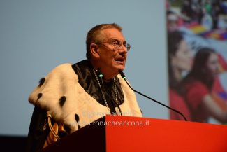 La parola è quindi passata a Sabrina Brizzola, carismatica presidente del Consiglio studentesco: «Noi vogliamo rigettare – ha detto – l’impostazione aziendalistica dell’università che forma personale per un mondo del lavoro tossico. Inoltre la formazione a distanza crea ulteriore distanza». Ha poi strappato un deciso applauso al pubblico rivolgendosi alla Regione Marche e al Ministero, dopo aver ribadito una ferma opposizione alla Link Campus University e, insistendo sulla necessità di investire su istruzione e sanità. «Non siamo la generazione cristallo – ha concluso – non siamo ideologici, ma siamo dalla parte giusta della storia. Noi la vostra guerra non la vogliamo».