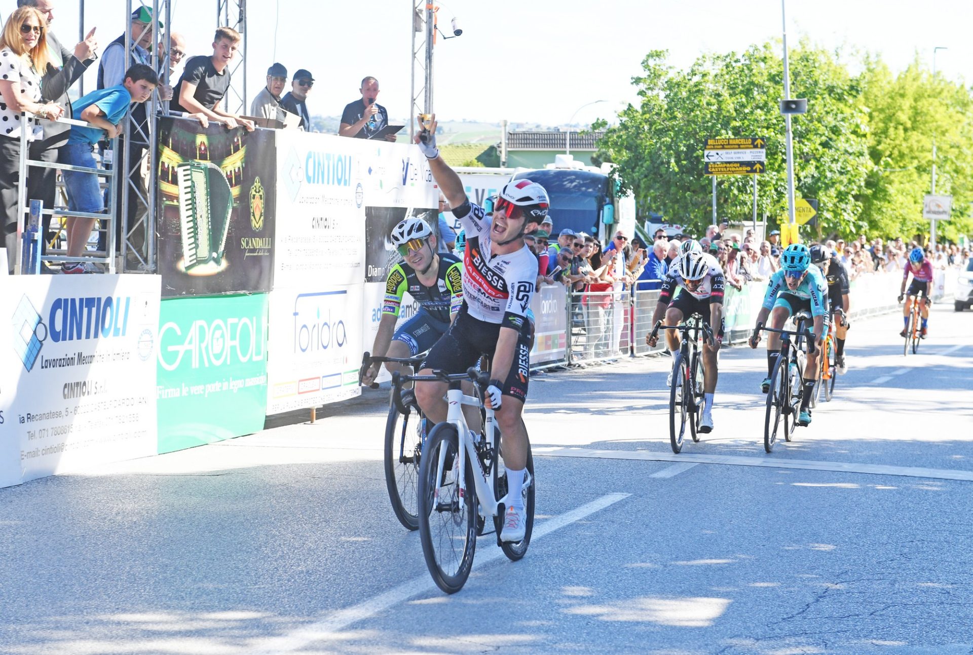 Una gara dal ritmo subito elevato (la media ha sfiorato i 47), in cui già al 30esimo km il ritardo accumulato dal gruppo era superiore al minuto e mezzo con 16 uomini efficacemente in avanscoperta: ruote veloci da cui man mano si è sfilata qualche unità, rimanendo in dieci – tre under 23, sette elite – all’ultimo passaggio sotto l’arrivo del Cerretano: Ferraro e Rojas (Vf group Bardiani), Tsarenko e Quartucci (Vini Fantini), Guzzo (Padovani), Regnanti (Hopplà), Veneri (Sissio Team), Volpato (Campana imballaggi), il campione emiratino a cronometro Jasim (Team Emirates) e lo stesso Dati. La strategia di attacchi e contrattacchi con l’ucraino Tsarenko che ha tentato di anticipare i tempi non ha cambiato la situazione, generando lo spettacolare sprint a dieci sul rettifilo finale che ha chiuso una Due Giorni di pregevole fattura tecnica e organizzativa.