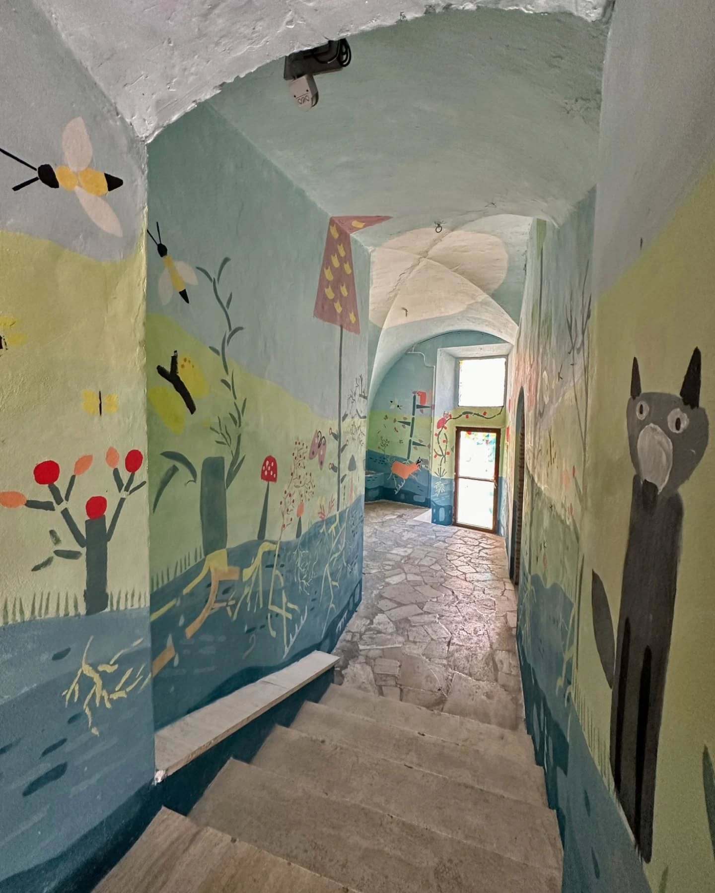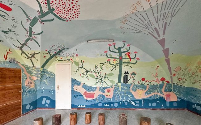 Uno spettacolo di colori – ricorda una nota di M.A.C. – ha preso vita nella sede del gruppo scout Agesci Osimo 1, grazie al laboratorio “Tana Libera Tutti” ideato dall’artista visiva milanese Silvia Moro. Con un approccio “relazionale” è stata trasformata la “tana” dei lupetti in un bosco murale, vibrante e inclusivo. Bambini, genitori e educatori hanno prima indossato divertenti copricapi, divenendo “alieni” che osservano la natura e le sue dinamiche. Poi, attraverso letture evocative e la creazione di stencil ispirati ai pattern naturali, hanno unito le loro diverse abilità creando un’opera collettiva. Il risultato? Un murale che è molto più di un semplice dipinto: è un simbolo della cooperazione. Silvia Moro ha sottolineato l’importanza di questo dialogo: «Tutti, indipendentemente dalle proprie abilità, hanno potuto contribuire all’intervento di restyling artistico e sociale, attraverso strumenti educativi non convenzionali. Un processo di riflessione per una società nuova, pacifica e ispirata alla Natura».