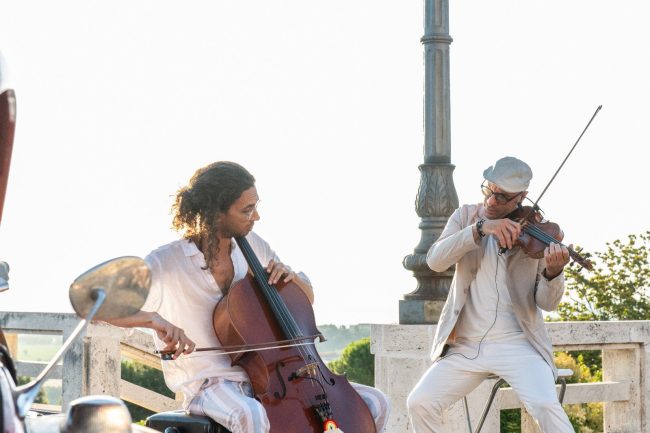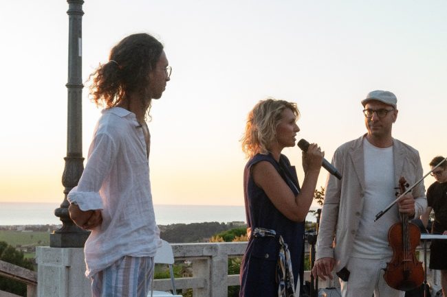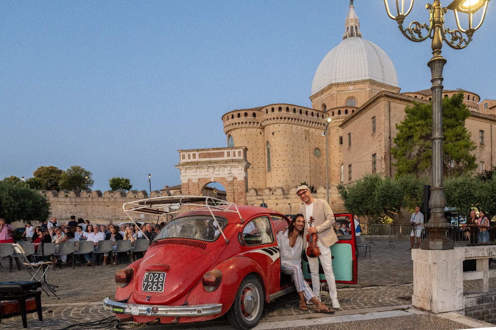 Sullo scorcio panoramico che si apre sulla campagna e sconfina fino al litorale e a Monte Conero sono risuonate le arie più famose dell’opera a partire dalla Turandot di Puccini mentre vibrano le corde del violino e del violoncello dei due musicisti.
