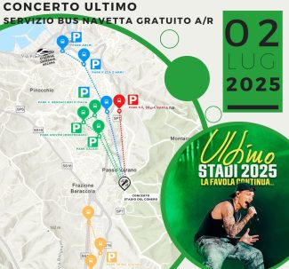 𝐋𝐈𝐍𝐄𝐀 𝐆𝐈𝐀𝐋𝐋𝐀: Non raggiunge lo stadio ma raccoglie gli automobilisti che parcheggiano alla Baraccola nelle aree di sosta indicate e li porta a Giometti Cinema, a circa un chilometro dal concerto.
